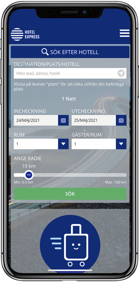 Bokning sker genom Hotel Express online eller vår bokningsservice. Våra anslutna hotell hittar du när du loggar in genom vår hemsida.